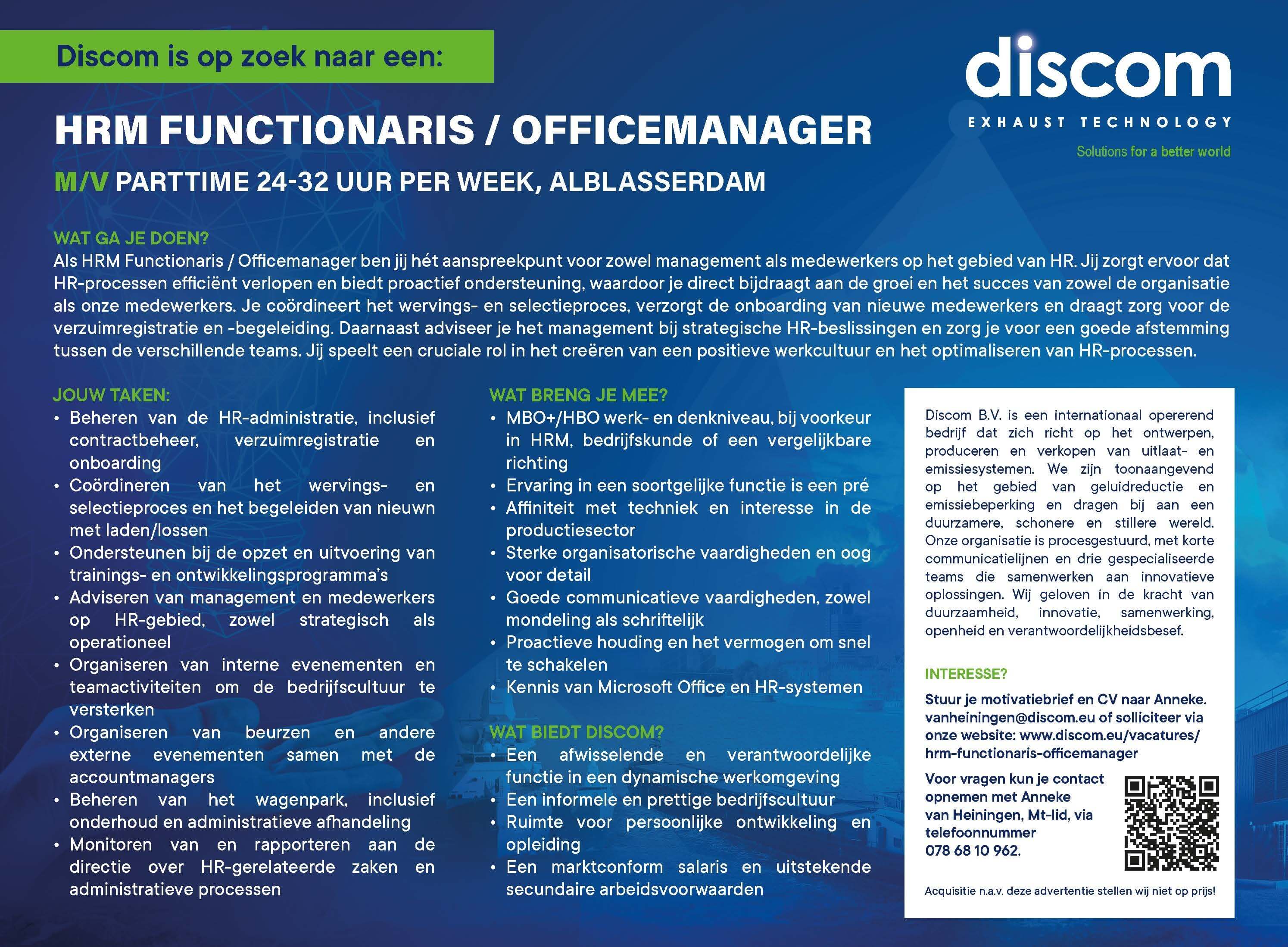 Heeft u vragen over de mogelijkheden om bij Discom te werken of over een vacature, neem contact op met Hélène Lakens.